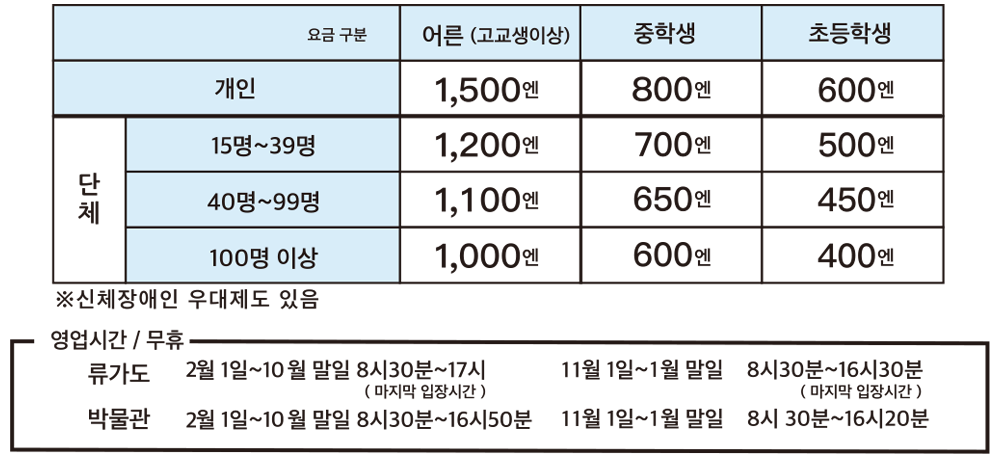 - 관광 코스 요금 + 1명 1,500엔 증가